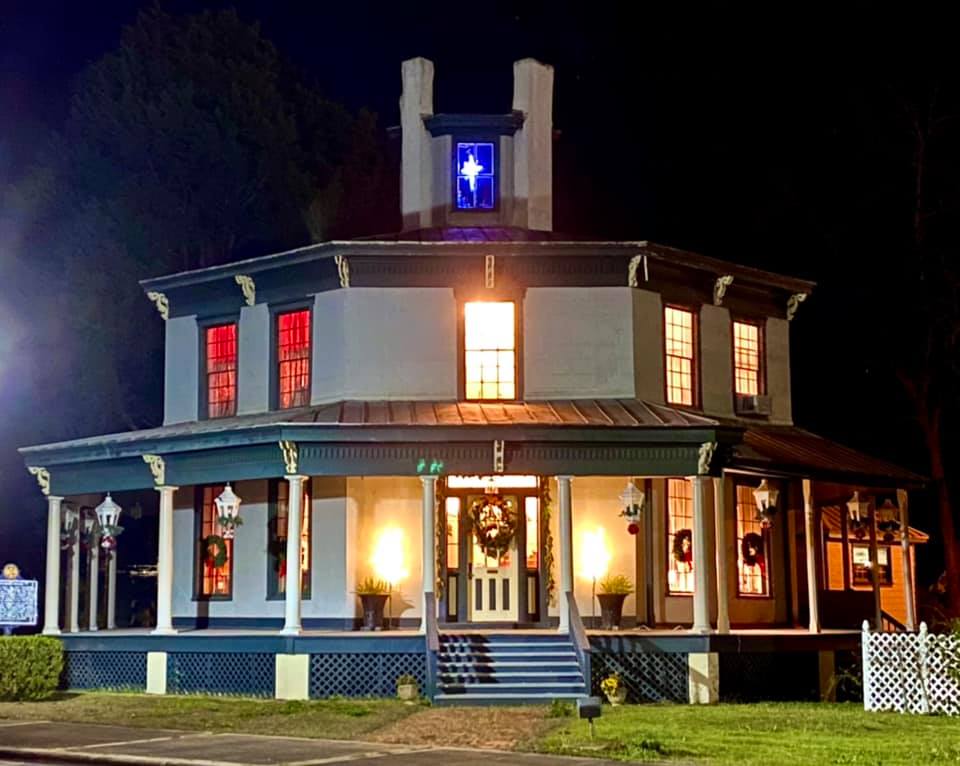 The Octagon House, also known as the Petty-Roberts House, is a historic home in Clayton, Barbour County. It was constructed between 1859 and 1861 by Benjamin Franklin Petty, a successful businessman. The Clayton house is believed to be the only surviving antebellum purely octagonal design in the southeastern United States that made use of the “gravel wall” building method, creating what is commonly referred to as a “concrete house.” The building is an outstanding example of the octagon type of architecture, which was widely popular in the 1850s. It is an Alabama Historical Landmark and was added to the National Register of Historic Places in 1974.