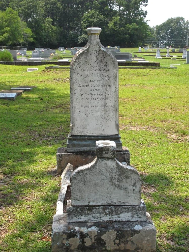 On July 18, 1863, the townsfolk of Clayton, Alabama, buried William T. Mullen between two bottles of whiskey. The specially shaped tombstones are a fitting tribute to a man who loved his drink.